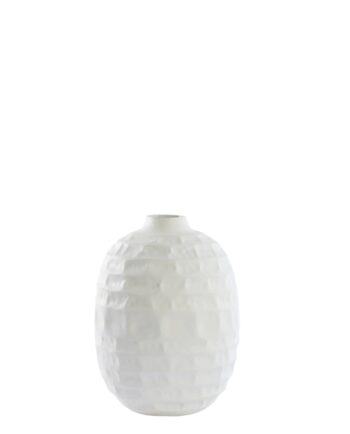 Βάζο μεταλλικό ανάγλυφη ρίγα SINDO Ø22x40cm λευκό/μαύρο