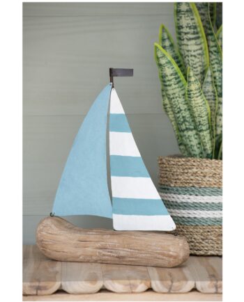 Καράβι ξύλο/μέταλλο SAILboat ριγέ λευκό/γαλάζιο