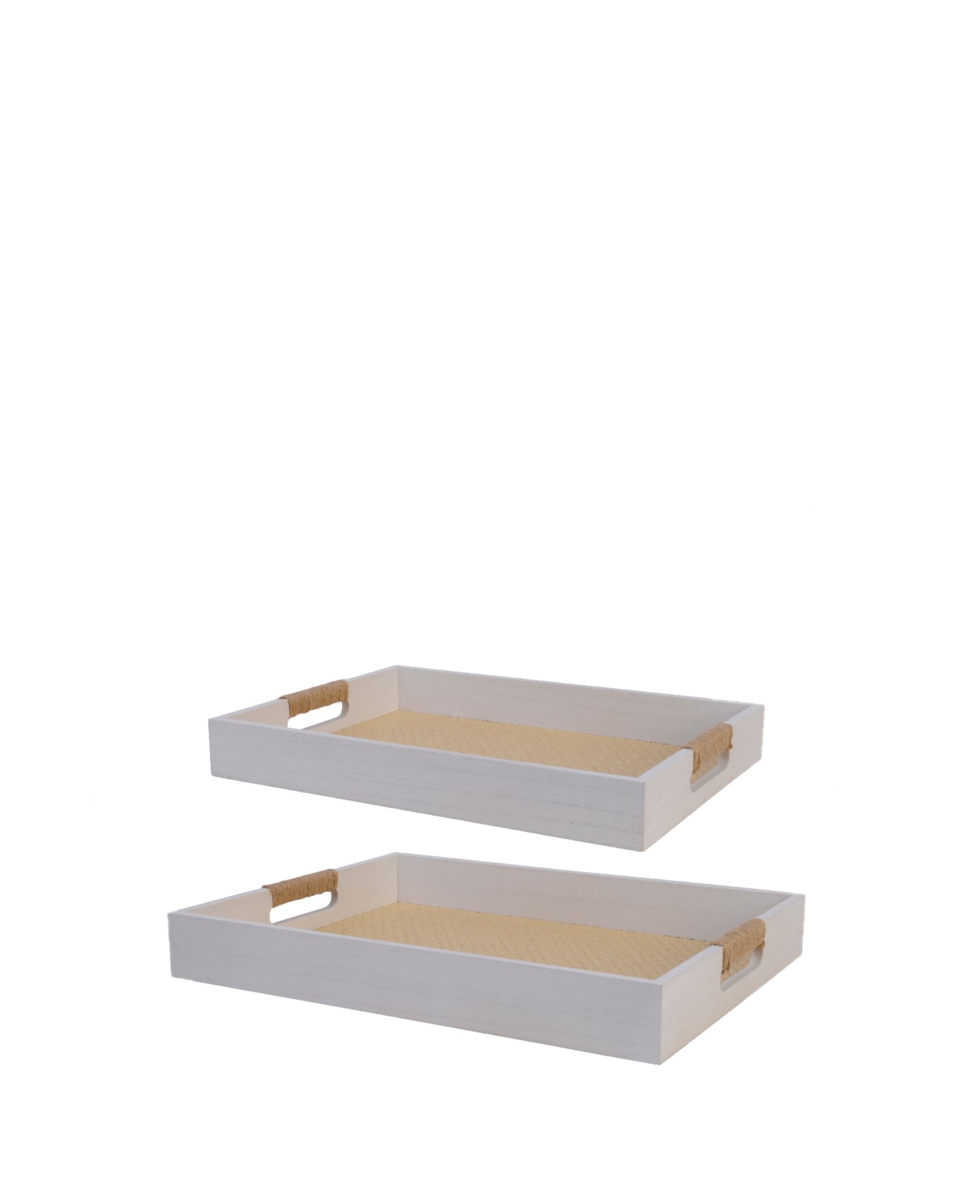 Δίσκος ξύλινος με χειρολαβή και επένδυση ραττάν TRADWE λευκό