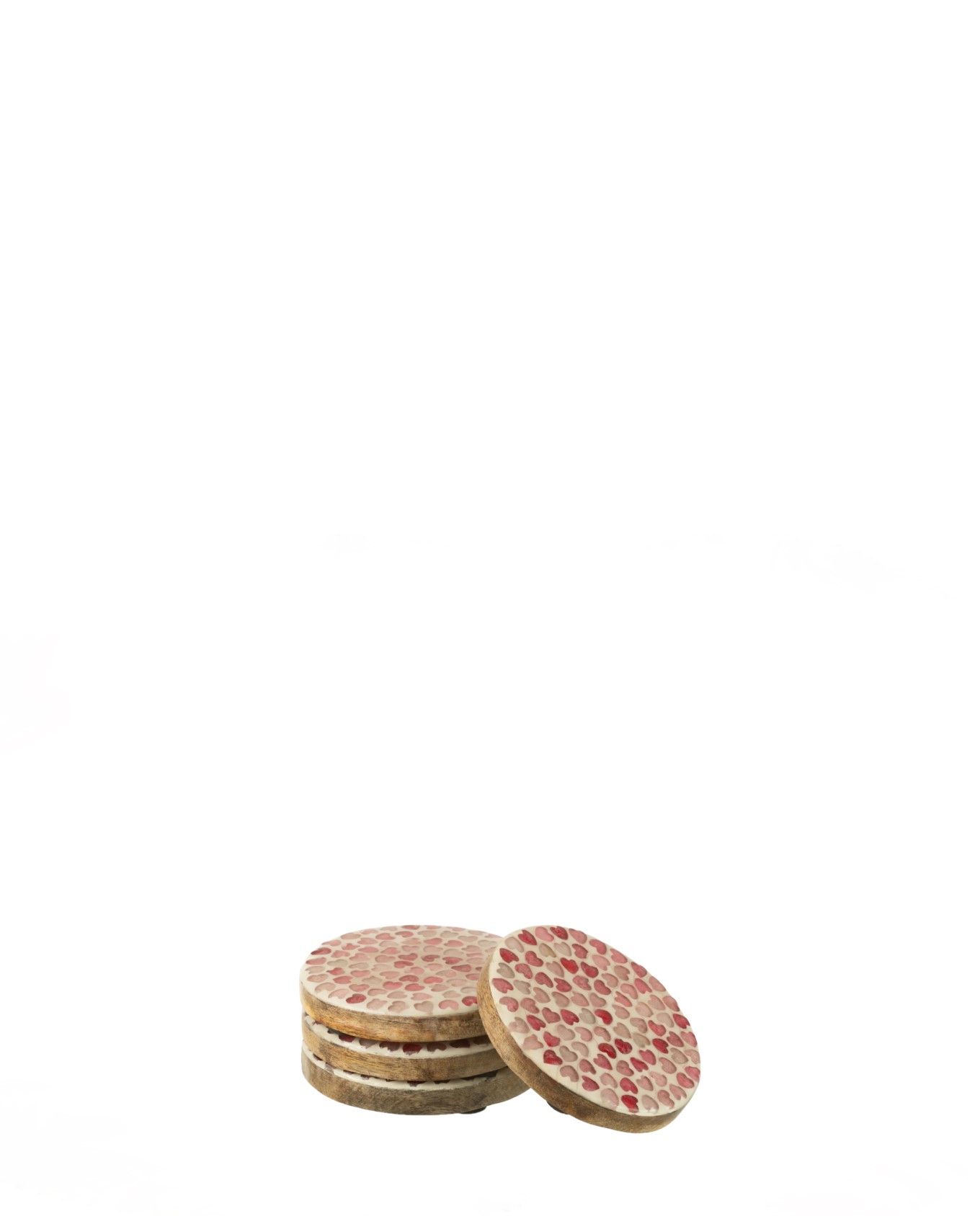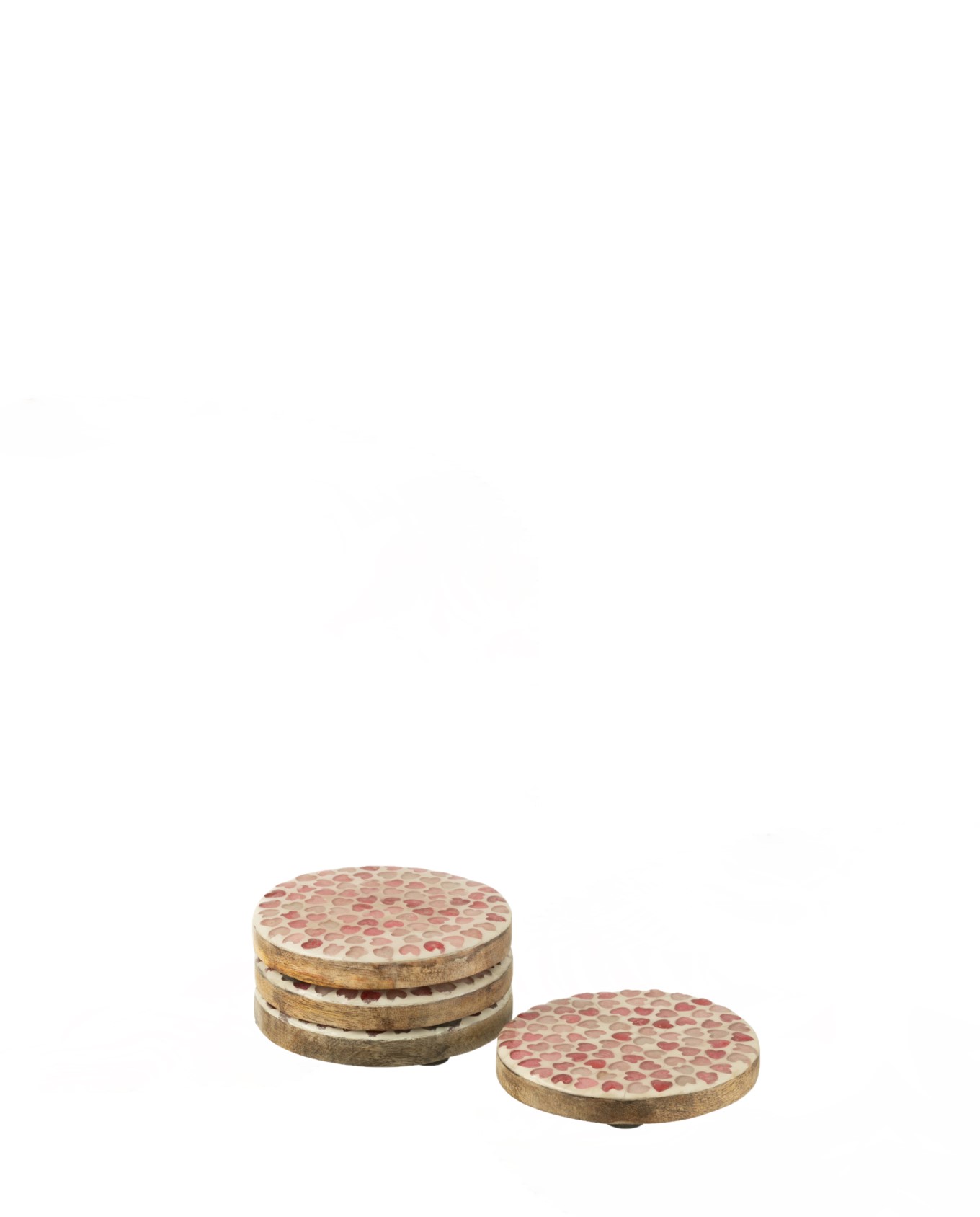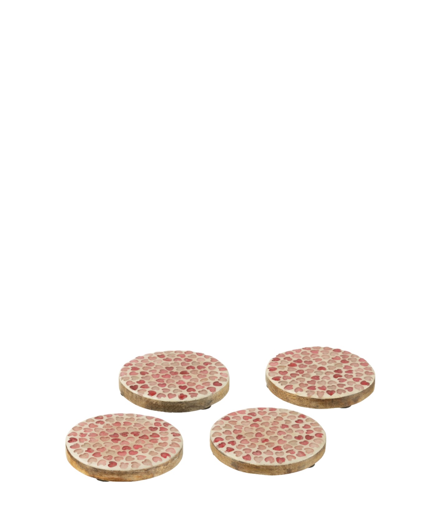 Σουβέρ ξύλινο με πορσελάνη σχέδιο καρδιά MOSAIC heart Ø10cm set/4 ροζ