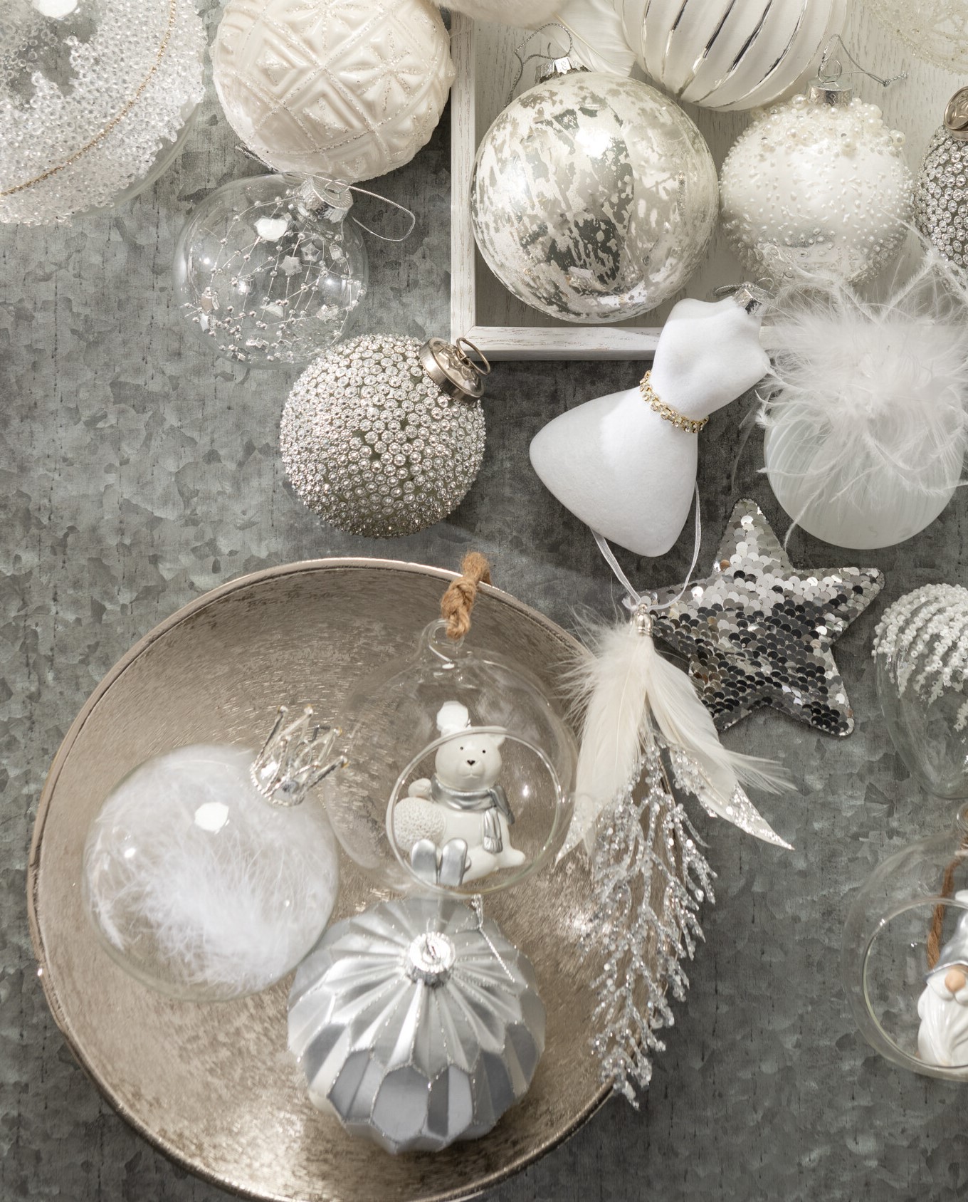 Μπάλα γυάλινη με πούπουλο LEAF Ø8cm λευκό/διάφανο