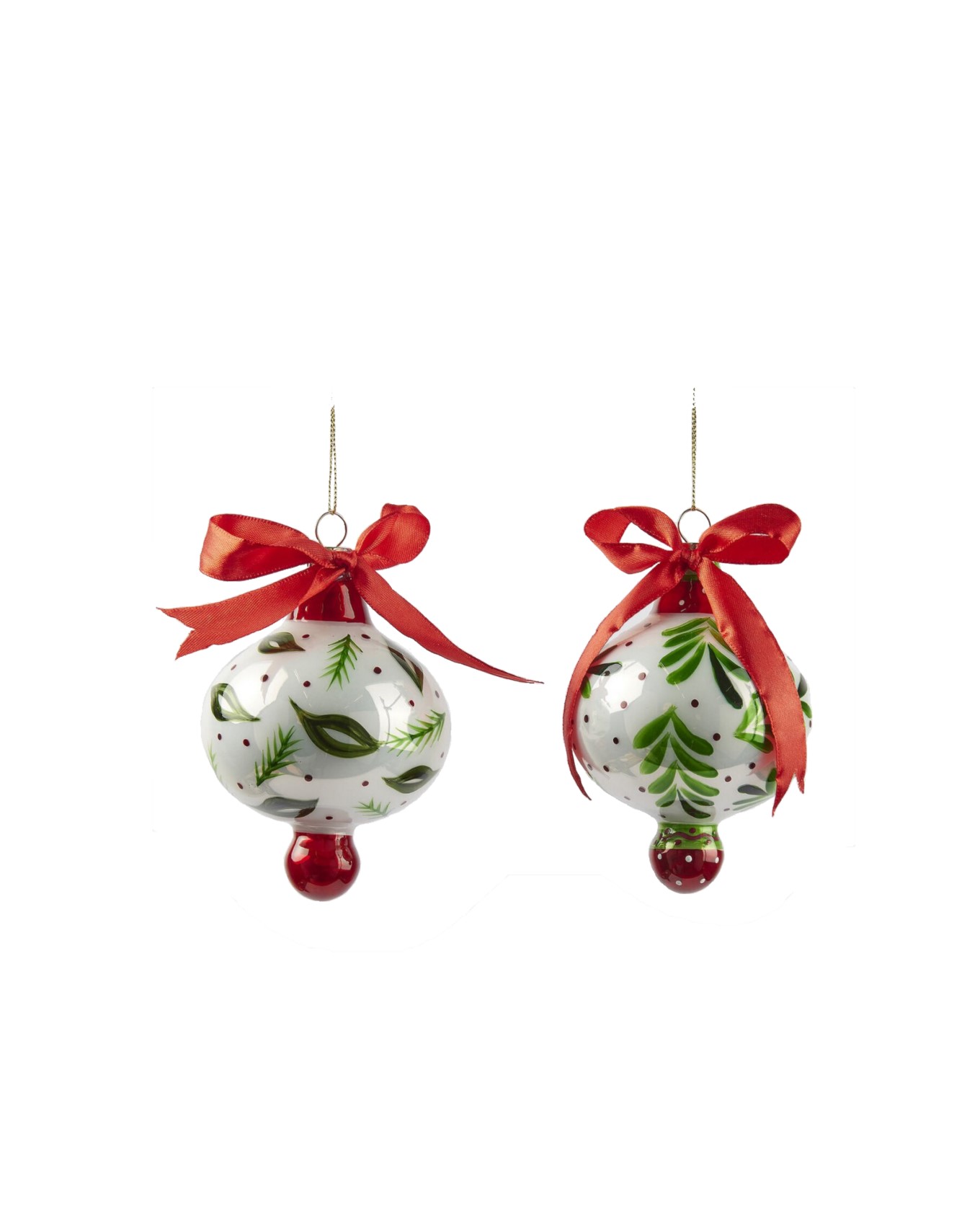 Στολίδι με ζωγραφιά γκι και κορδέλα TROTTOLA FOGLIE H12cm