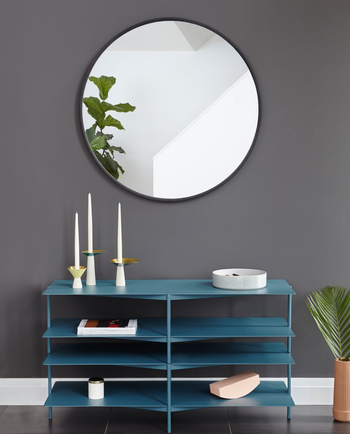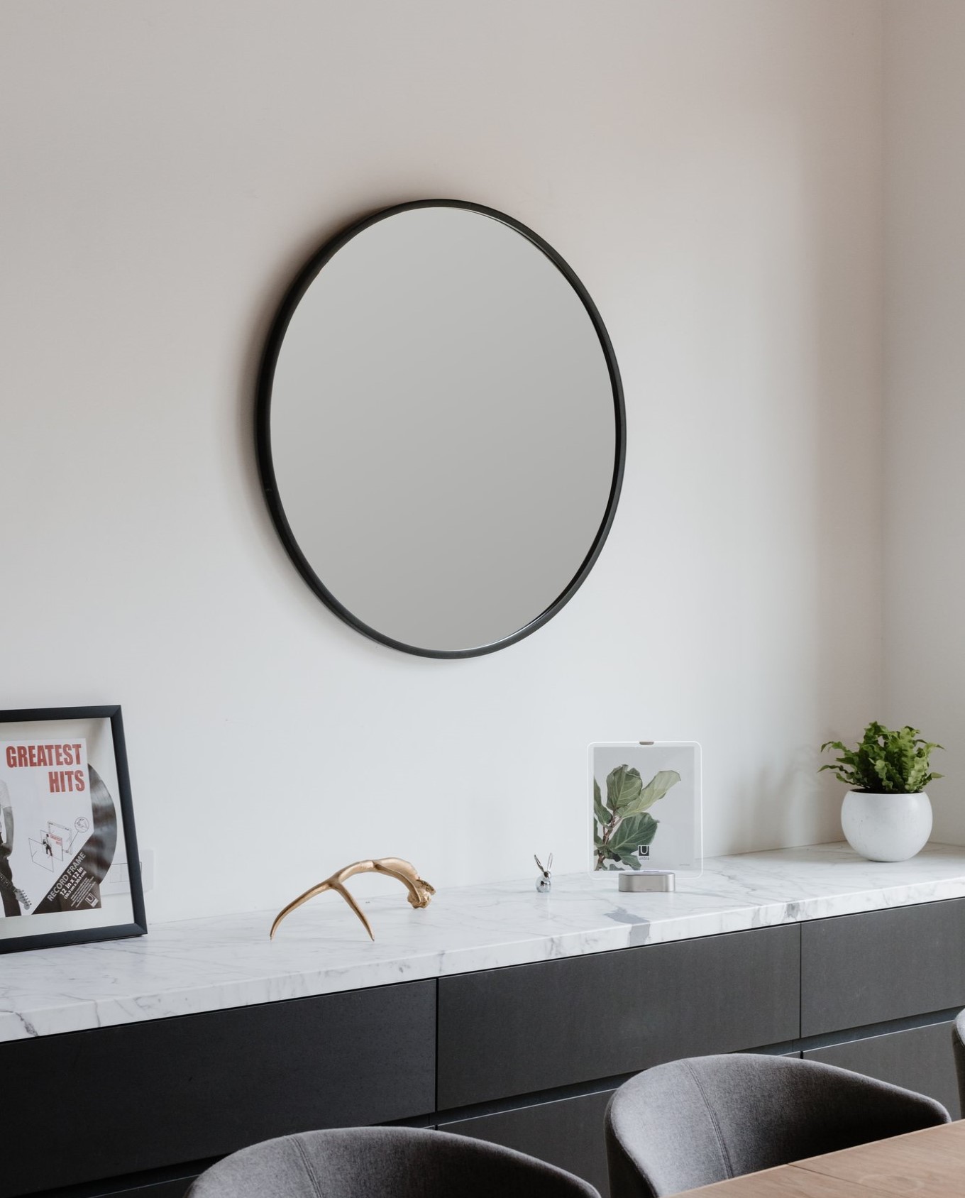 Καθρέπτης επιτοίχιος στρογγυλός με διάμετρο 94cm, με πλαίσιο από καοτσούκ. Διατηρώντας την άψογη χρηστικότητα -λόγω υλικών του-, παράλληλα με το μοντέρνο και μίνιμαλ στυλ του μπορεί να τοποθετηθεί στην είσοδο, την κρεβατοκάμαρα, το σαλόνι ακόμα και στο μπάνιο. Περιλαμβάνονται εξαρτήματα τοποθέτησης στη συσκευασία. Διαστάσεις:Ø 94x3cm Bάρος: 7.5kg