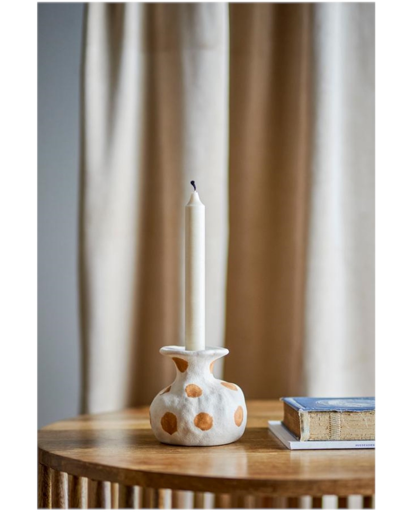Κηροπήγιο κεραμικό BYRON Η10cm πουά μπεζ
