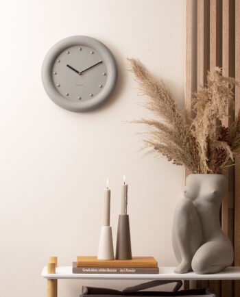 Ρολόϊ επιτραπέζιο με μινιμαλ σχεδιασμό και μοντέρνα εμφάνιση. Κατασκευασμένο από μέταλλο σε μαύρη ματ απόχρωση, με πόδι στη βάση του, λευκή αρίθμηση και δείκτες.