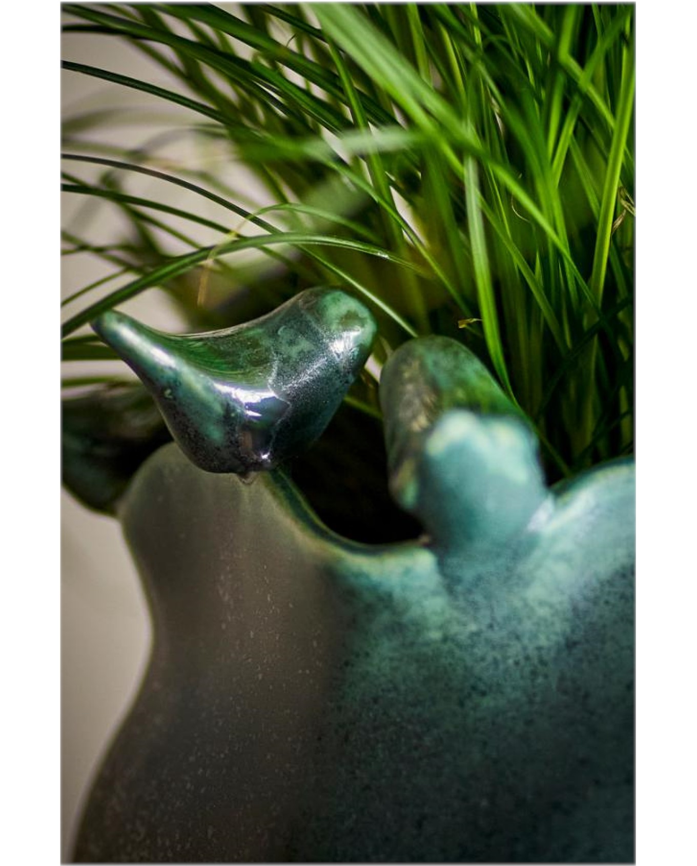Βάζο/Κασπώ κεραμικό με πουλιά CHARLIZE birds H20cm πράσινο