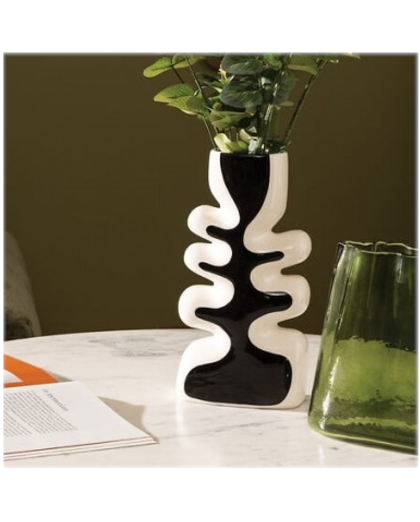 Βάζο κεραμικό σχήμα φύλλου LEAFblack Η28cm μαύρο/λευκό