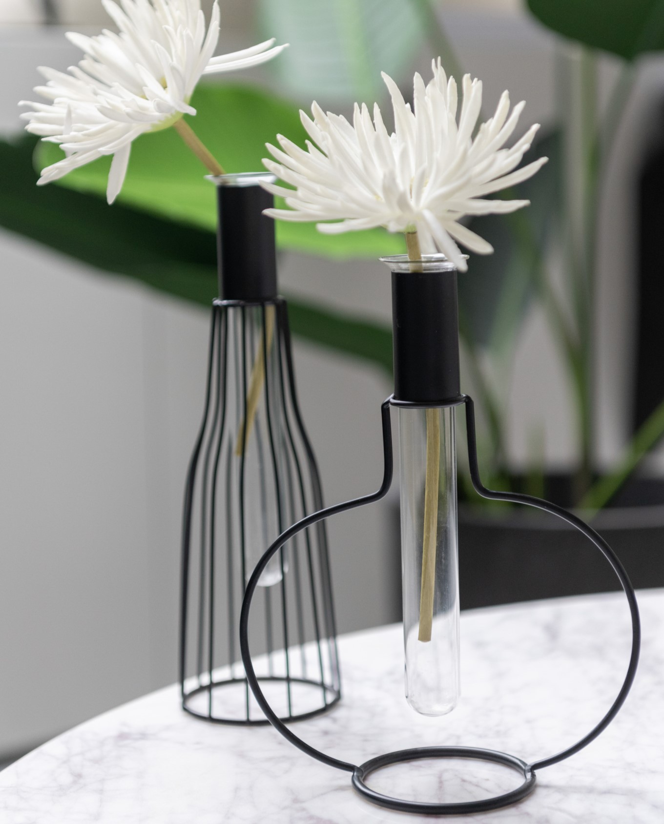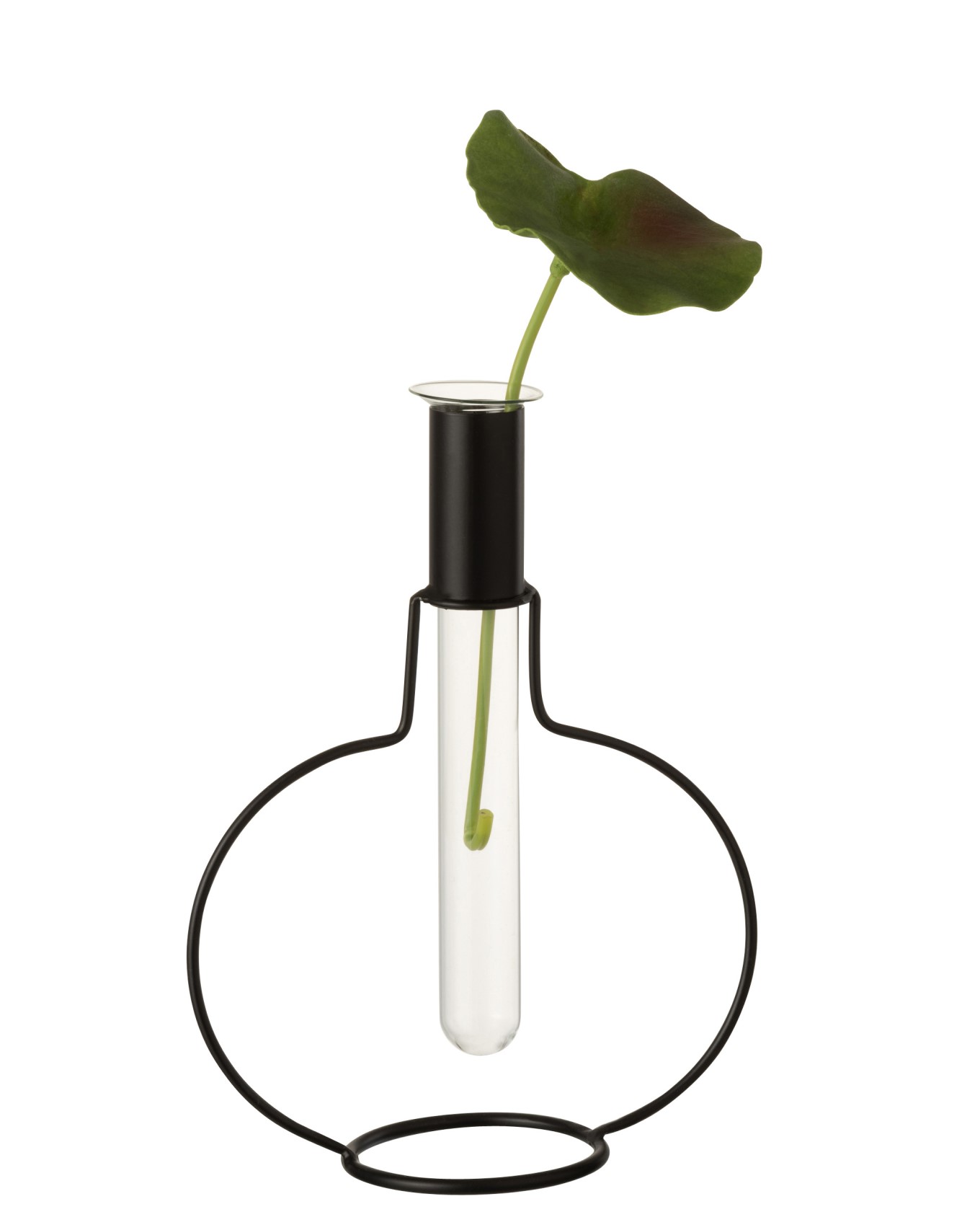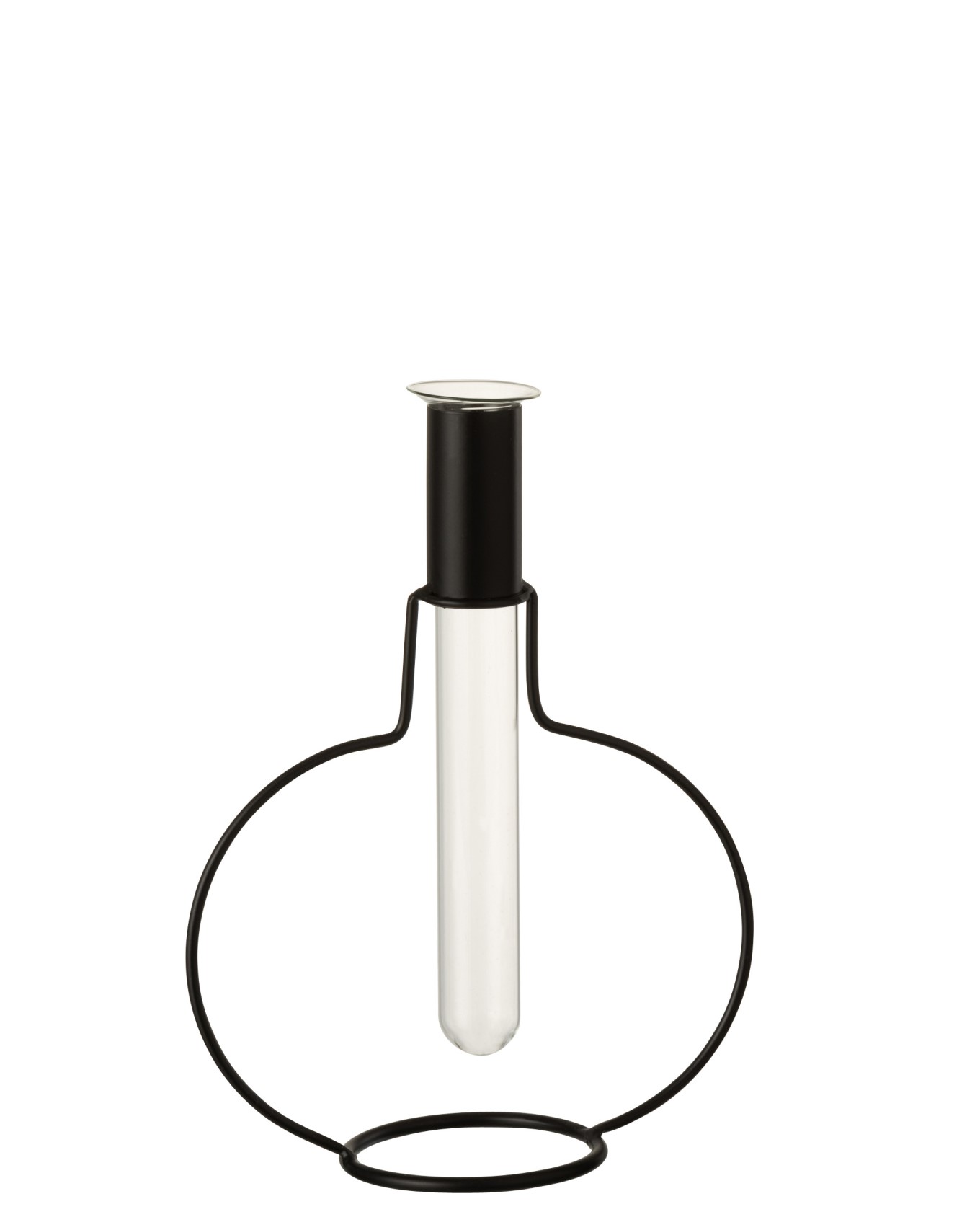 Γυάλινο βάζο σωλήνας με μεταλλική στρογγυλή βάση.