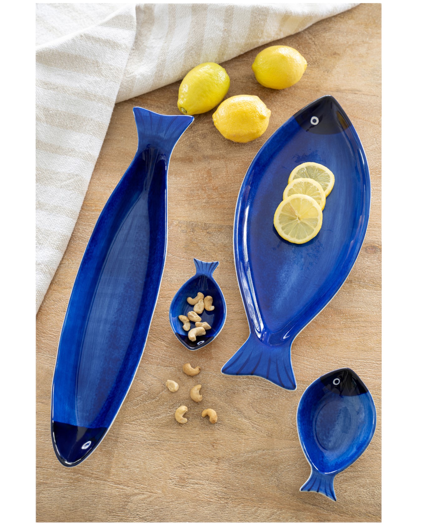 Μπολιέρα κεραμική σχέδιο ψάρι NEEDLEFISH 48x10x6.5cm μπλε