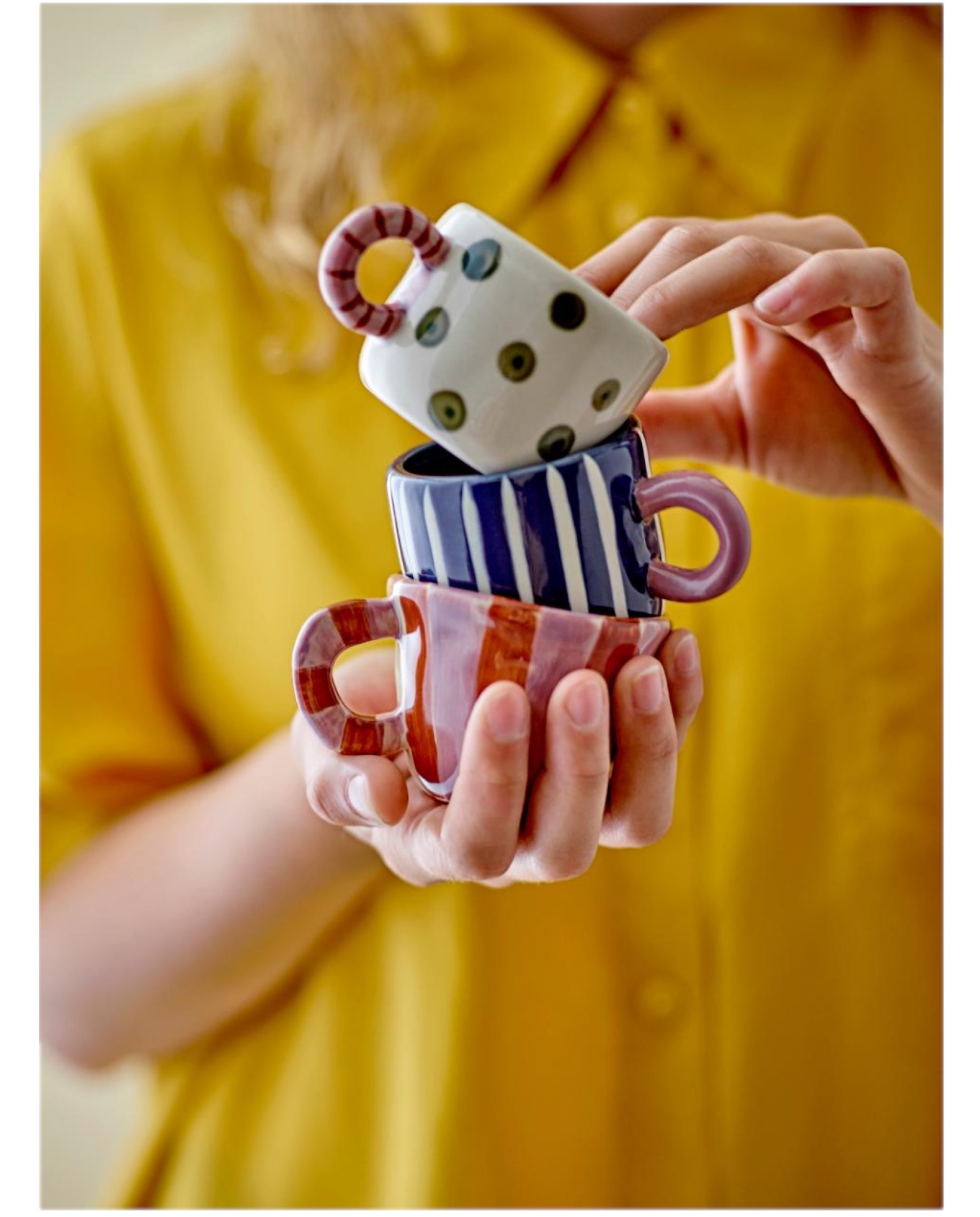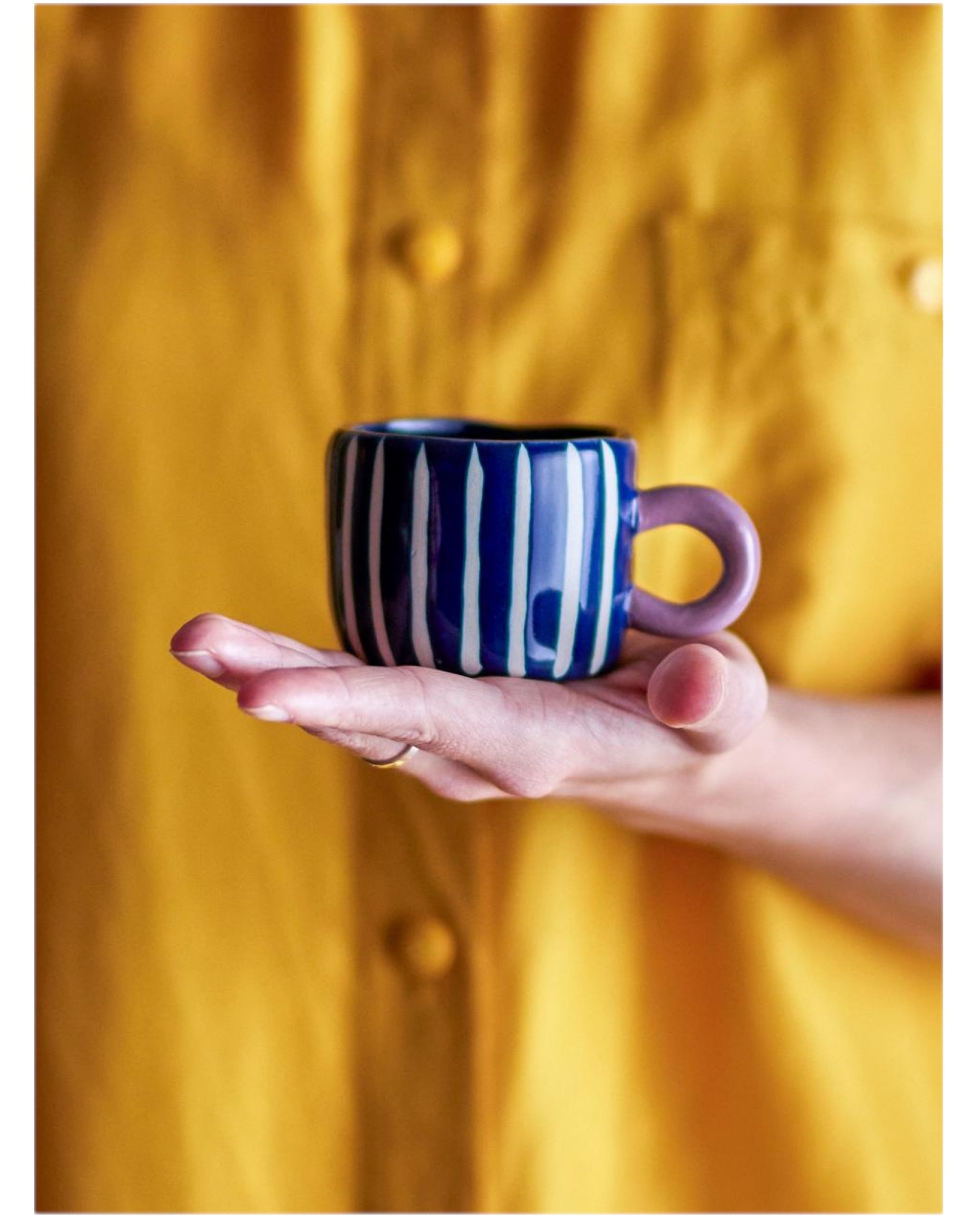 Το φλιτζάνι Nini είναι κατασκευασμένο από κεραμικό stoneware και διαθέτει ένα χαριτωμένο, ζωγραφισμένο στο χέρι ριγέ σχέδιο. Το φλιτζάνι είναι διακοσμημένο με λεπτές μπλε και άσπρες ρίγες, με λαβή σε βαθύ ροζ. Ο μοναδικός σχεδιασμός του το καθιστά ιδανικό για συνδυασμό με άλλα φλιτζάνια, δημιουργώντας μια διασκεδαστική και διακοσμητική συλλογή. Αυτό το γοητευτικό φλιτζάνι θα διακοσμήσει πανέμορφα και με στυλ την κουζίνα σας, ακόμα και όταν δε το χρησιμοποίείτε!