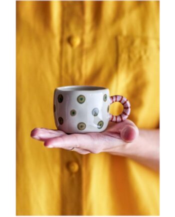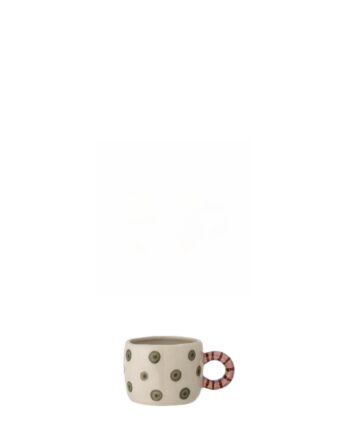 Το φλιτζάνι Nini Cup από την Bloomingville είναι ένα λείο, στρογγυλεμένο φλιτζάνι με παιχνιδιάρικη λαβή. Είναι ζωγραφισμένο στο χέρι και διακοσμημένο με απαλά λουλουδάτα μοτίβα με ένα διακριτικό ανάγλυφο εφέ που προσθέτει απαλή υφή στον ζεστό του τόνο. Μια εκλεπτυσμένη και γοητευτική προσθήκη στα καθημερινά τραπέζια. Ενδέχεται να υπάρχουν μικρές διακυμάνσεις στο σχέδιο και την ένταση του χρώματος, καθιστώντας κάθε κομμάτι μοναδικό.