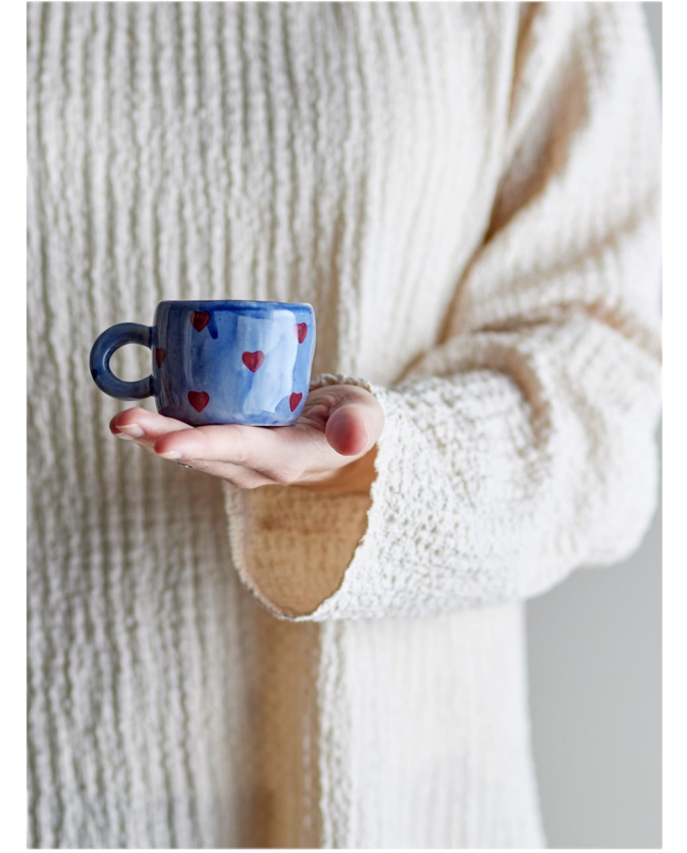 Το φλιτζάνι Nini είναι κατασκευασμένο από κεραμικό stoneware και διακοσμημένο με τις καλύτερες μικρές κόκκινες καρδιές σε μπλε φόντο. Το φλιτζάνι διαθέτει μια υπέροχη λαβή που ταιριάζει απόλυτα ακόμα και σε μικρά χεράκια. Χρησιμοποιήστε το φλιτζάνι για ζεστές στιγμές με ζεστό κακάο, marshmallows και ζεστές αγκαλιές ή ως φλιτζάνι εσπρέσο για πιο μεγάλα παιδιά!