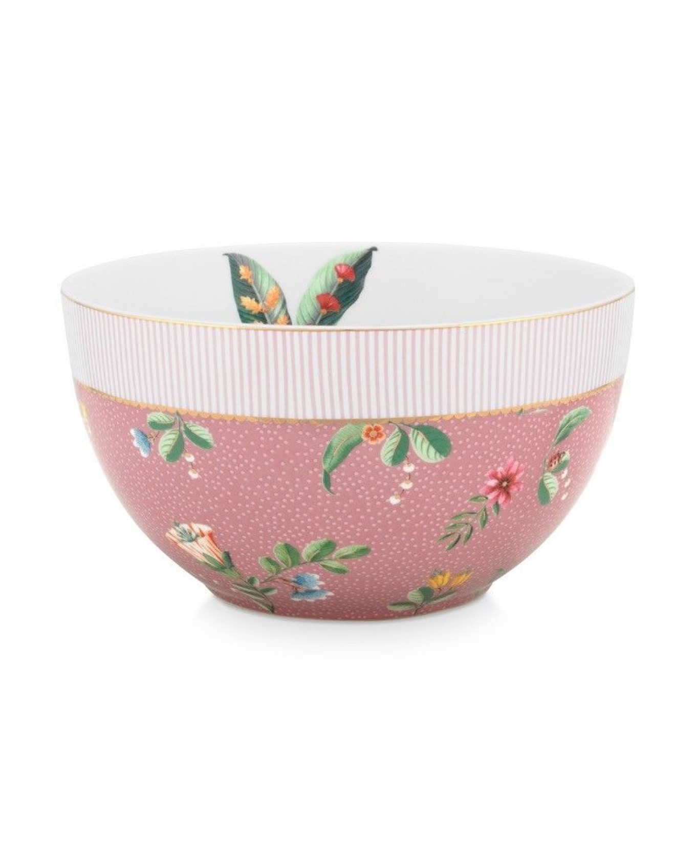 Μεγάλο μπολ από πορσελάνη σε ροζ απόχρωση με λουλούδια. Της Pip Studio με τη σφραγίδα της εταιρίας. Διάμετρος 18 εκατοστά.