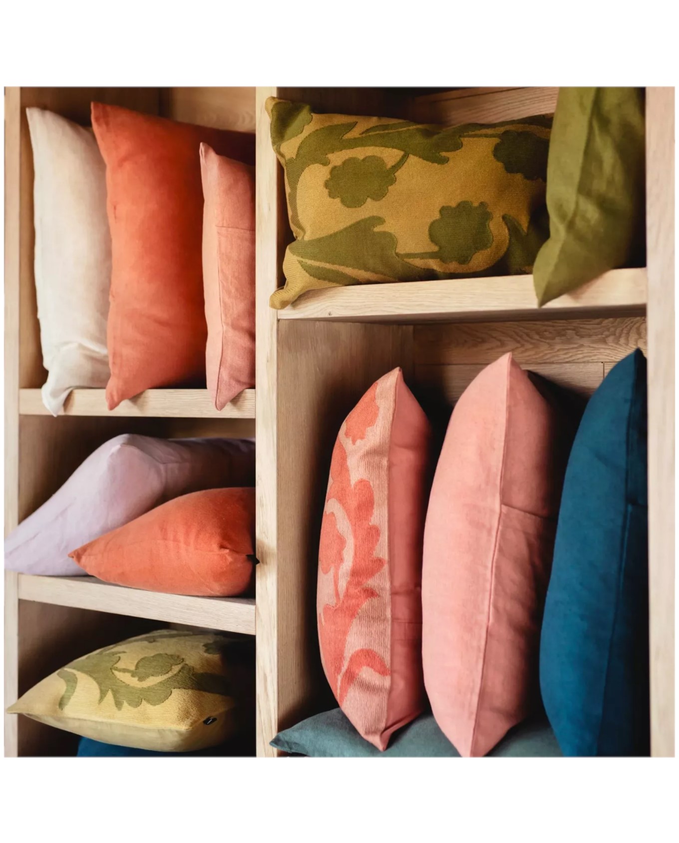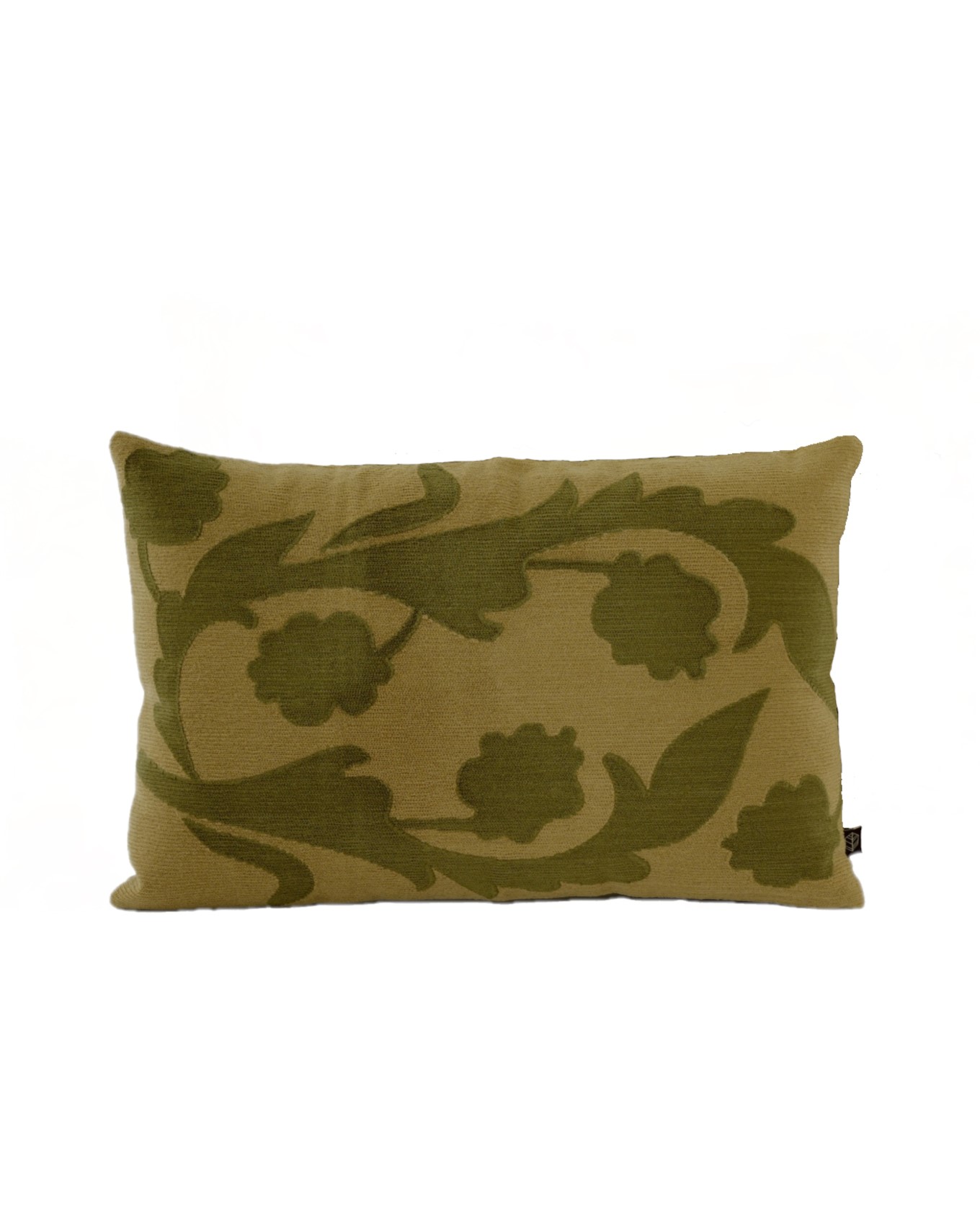 Μαξιλάρι κεντητό με σχέδιο φύλλο με ανθό σε κίνηση σε υπέροχη αριστοκρατική απόχρωση κολισαβρί με πιο σκούρο πράσινο της ελιάς στο σχέδιο του.