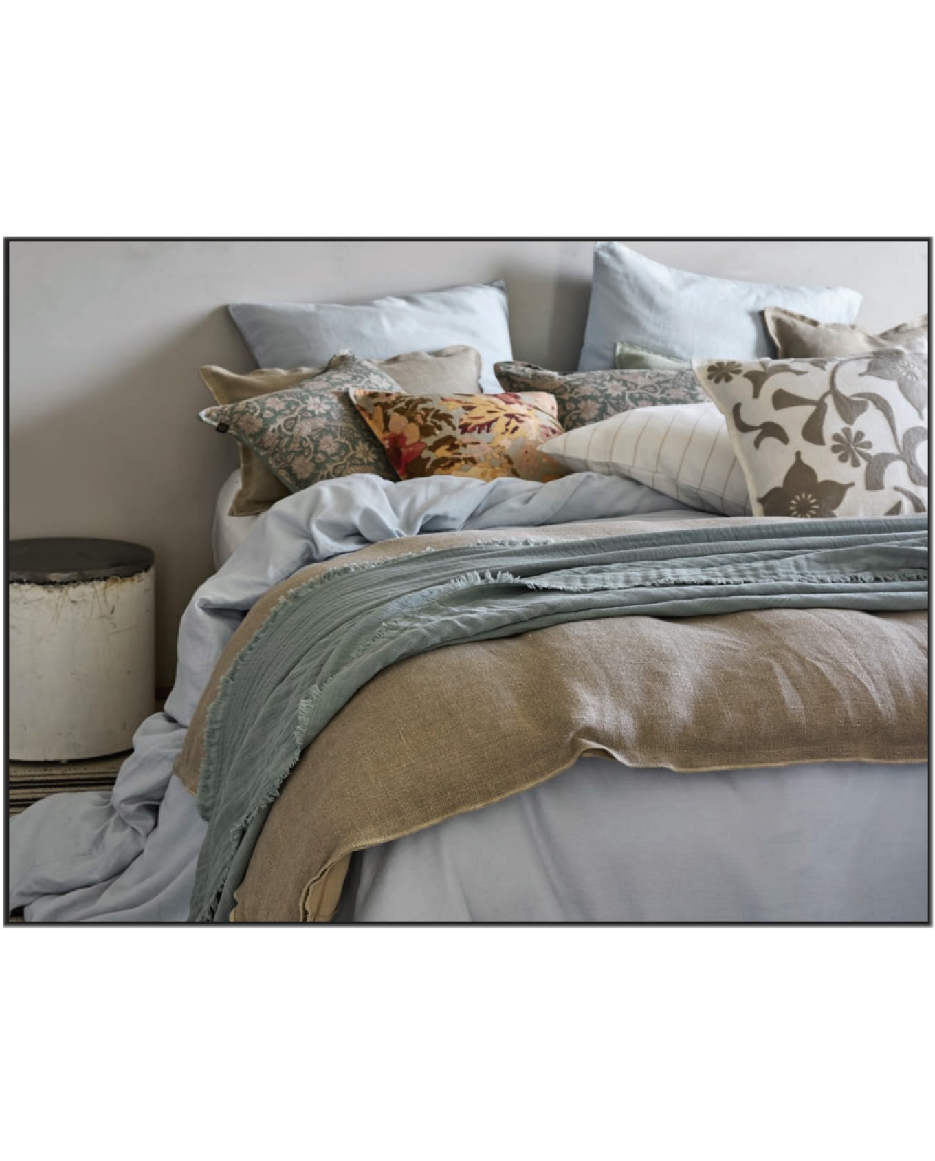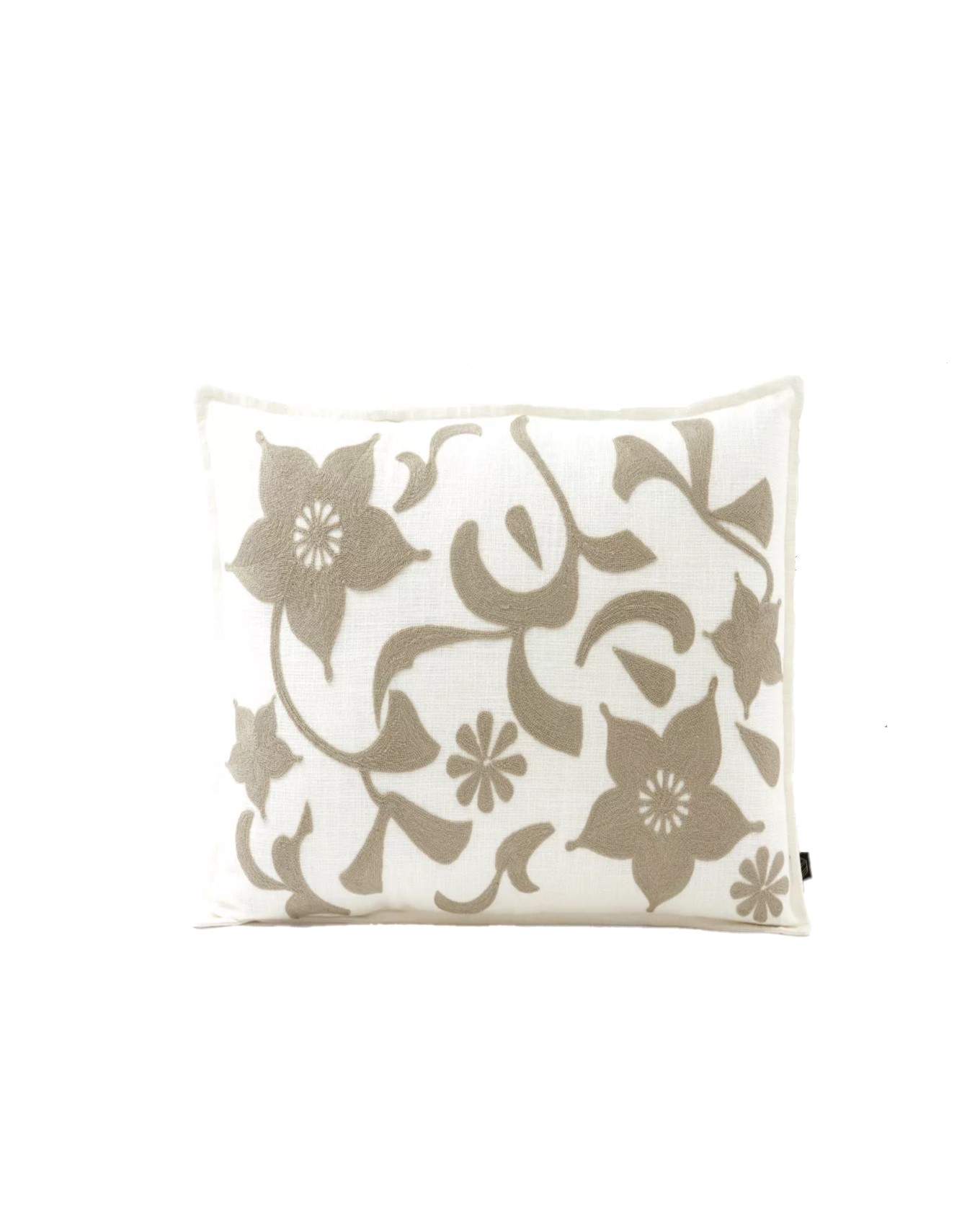 Μαξιλάρι βαμβακερό/λινό κεντημένα λουλούδια CHIARAflowers 45x45cm χακί/λευκό