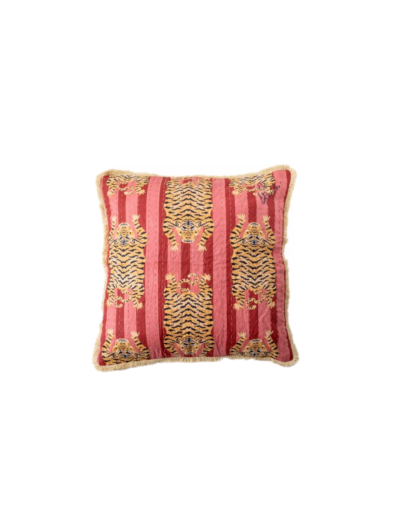 Μαξιλάρι βαμβακερό σχέδιο τίγρεις και κρόσια POIRINO 45x45cm ροζ