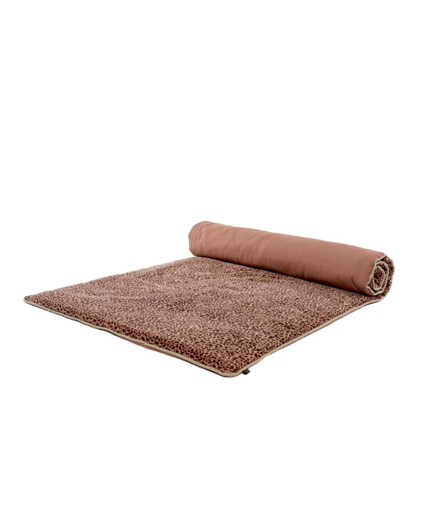 Το εκτυπωτό “λεοπάρ” (animal print) μοτίβο σε συνδυασμό με τις χρωματικούς τόνους του ζεστό ροζ/καφέ, το βαθύ πράσινο και το χρυσό/οκρά, την υφή του βαμβακερού βελούδου με απαλή υφή και την διακριτική λάμψη που αντανακλά το φως, χαρίζοντας ένταση, χαρακτήρα και υψηλή αισθητική σε κάθε χώρο.