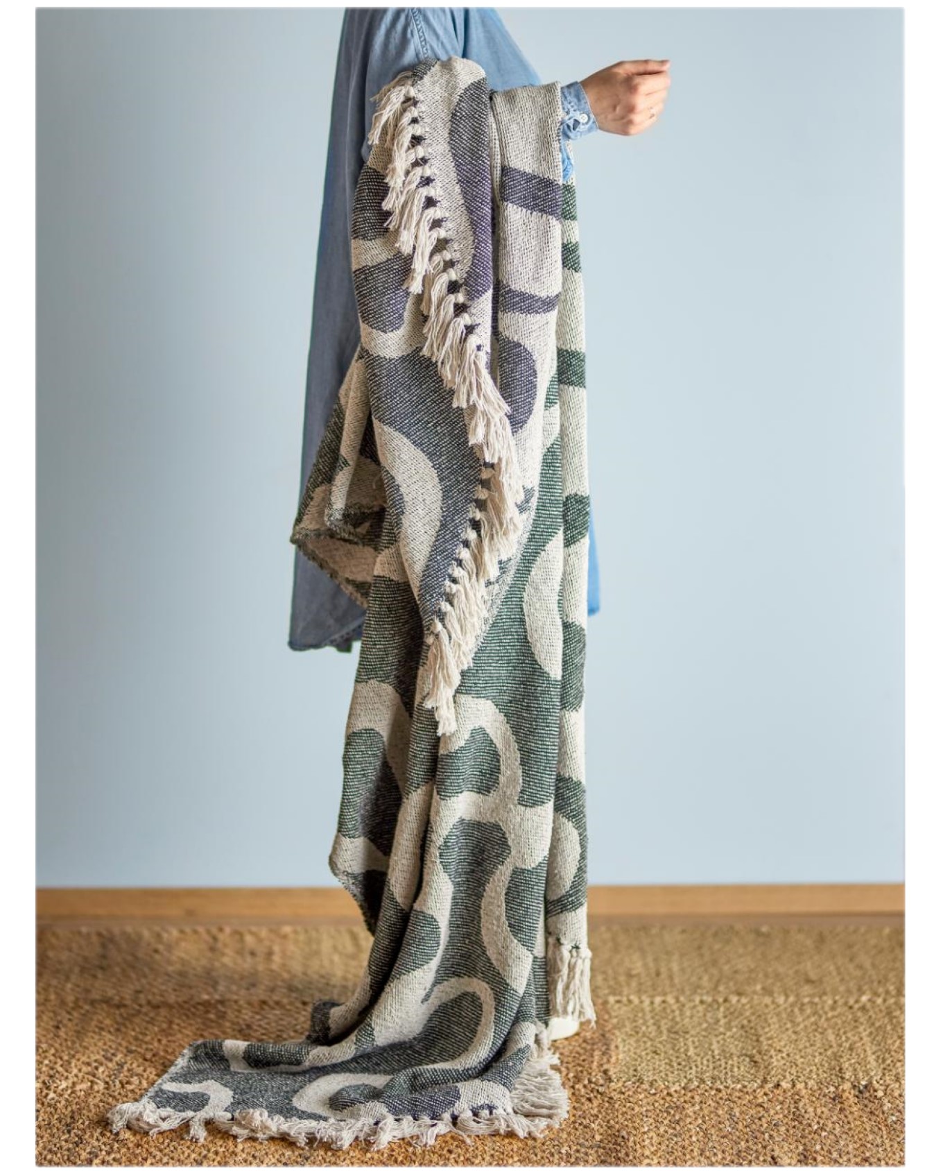 Το ριχτάρι Salobre της Bloomingville είναι υφασμένο από ανακυκλωμένο βαμβάκι με οργανικό μοτίβο σε μαύρο και μπεζ χρώμα και στην άλλη του πλευρά dusty πράσινο με μπεζ φόντο. Είναι διακοσμημένο με διακοσμητικά κρόσσια που προσθέτουν μια casual γοητεία. Μια ιδανική επιλογή για να φέρετε άνεση και στυλ στο σπίτι σας.